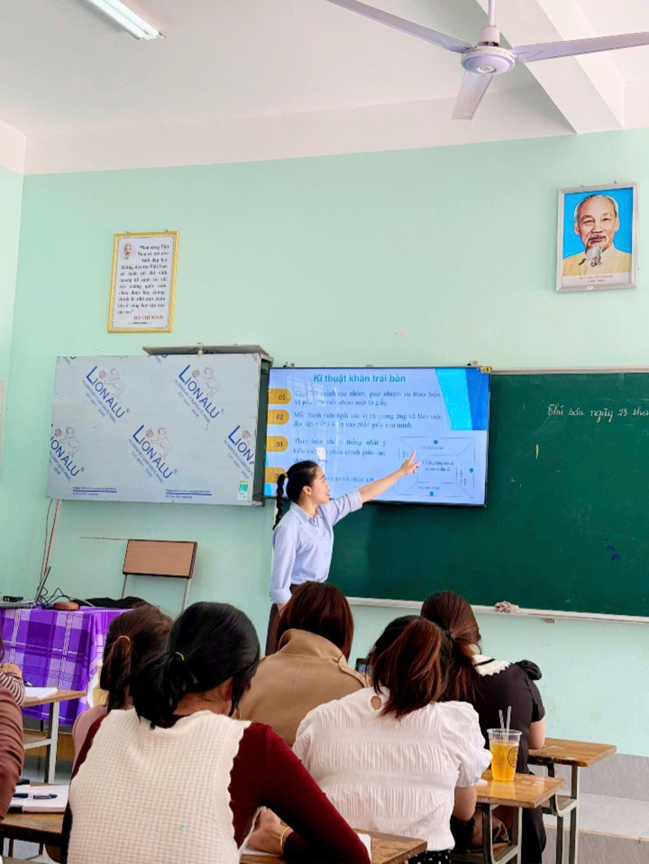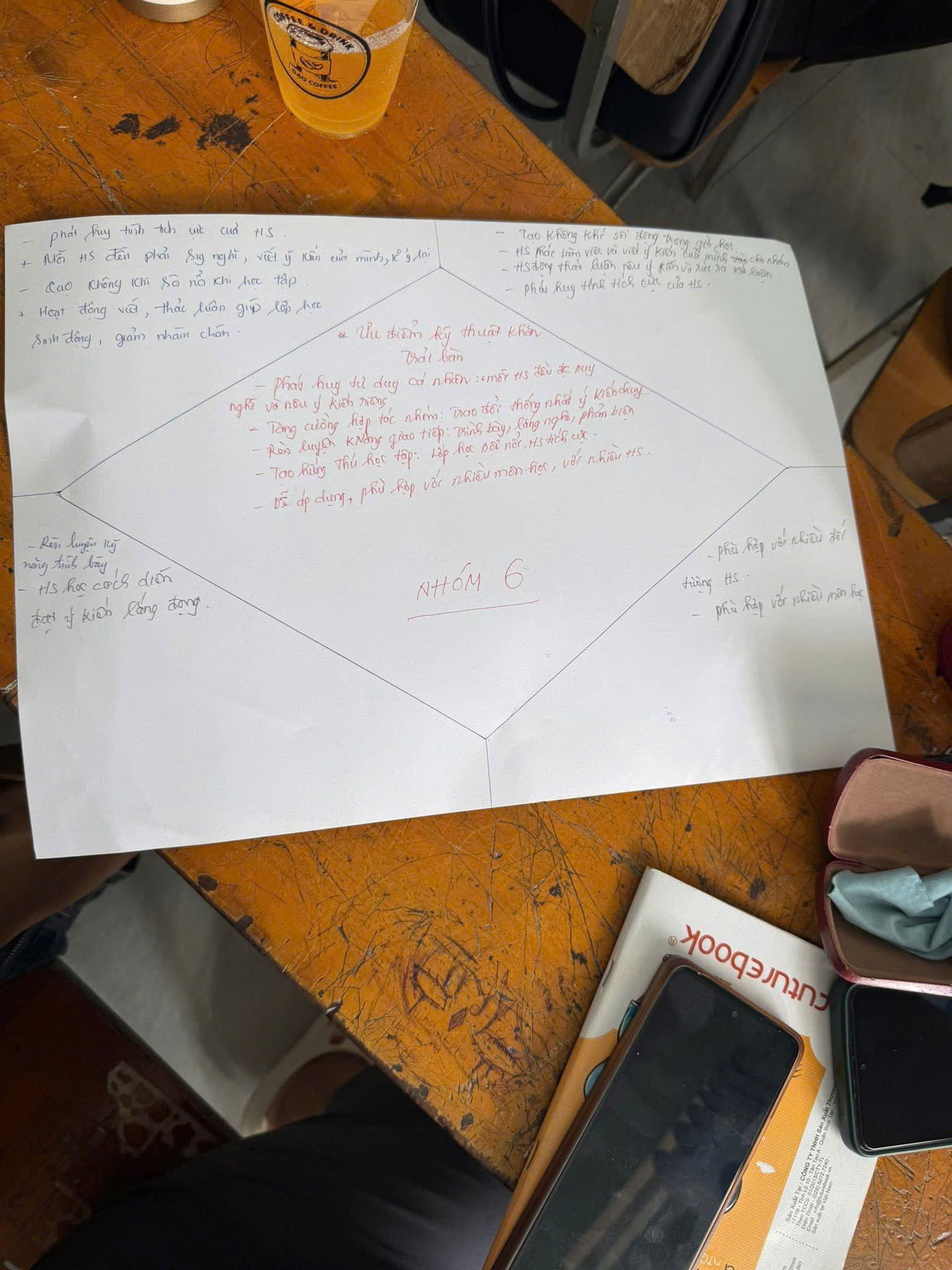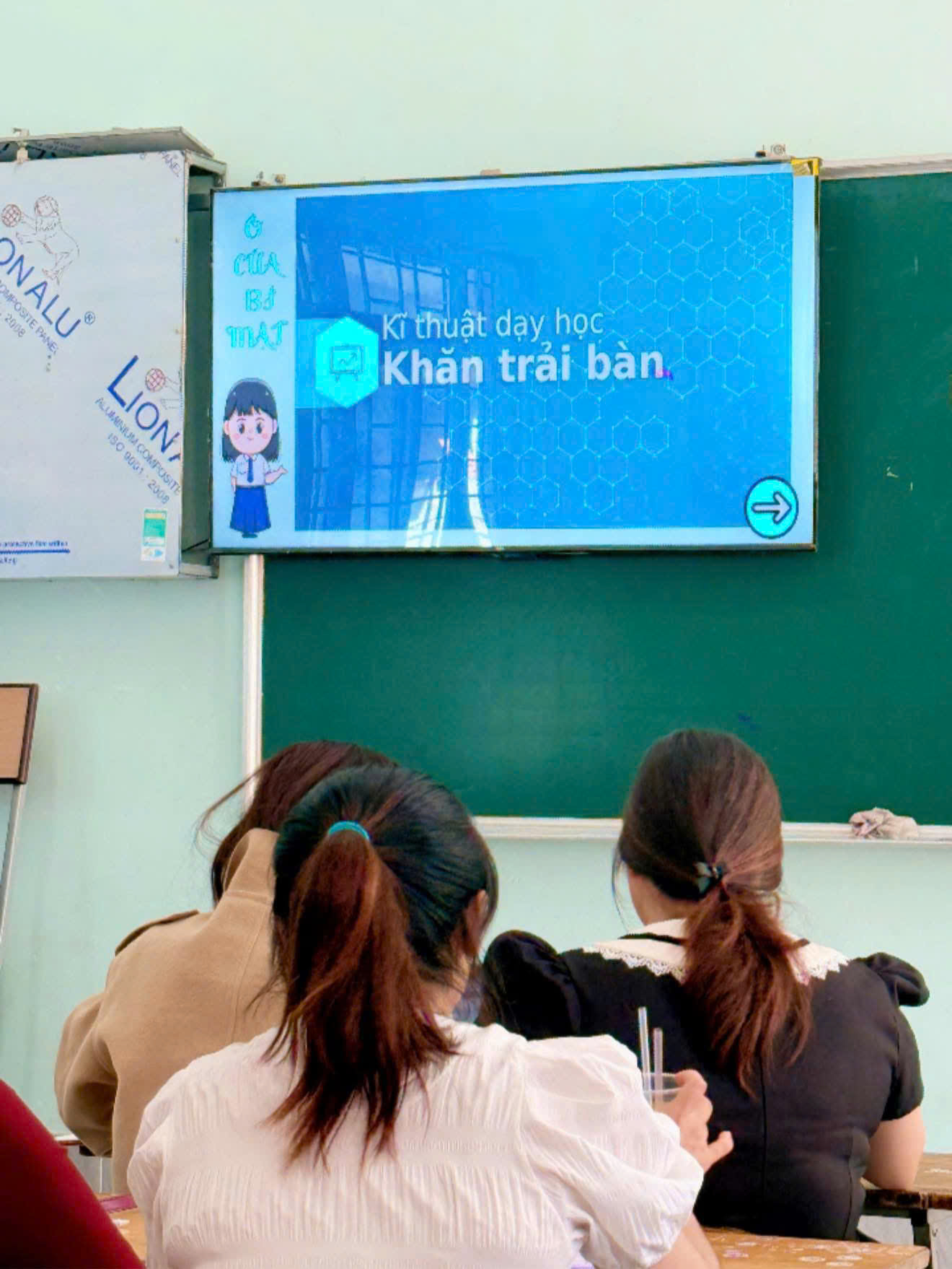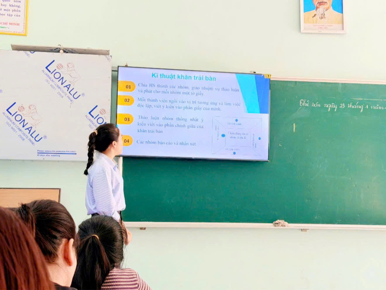 Tại buổi sinh hoạt, cô Lưu Cao Phương đã chia sẻ hiệu quả kỹ thuật “Khăn trải bàn” – một phương pháp dạy học tích cực giúp học sinh phát huy tư duy, tăng cường hợp tác nhóm và mạnh dạn bày tỏ ý kiến cá nhân.