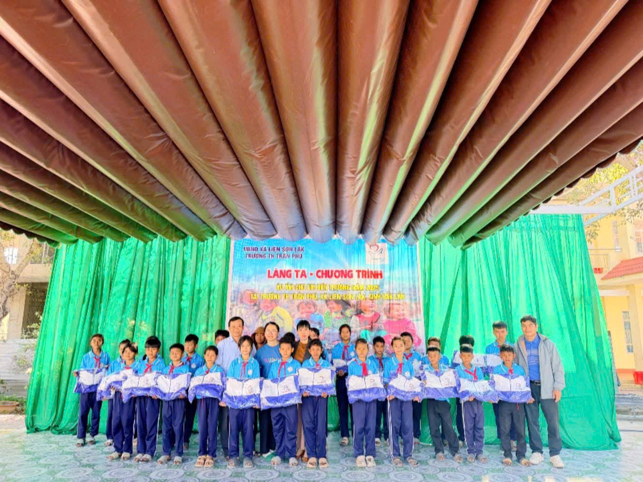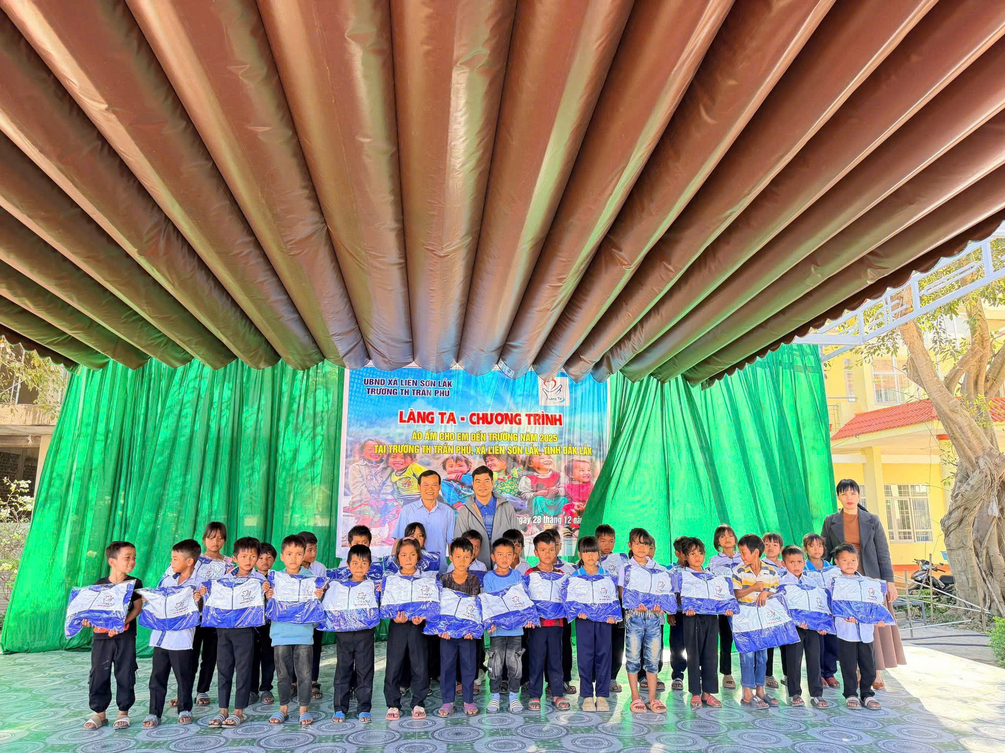 Sáng Chủ nhật, ngày 28/12/2025, chương trình “LÀNG TA – ÁO ẤM CHO EM ĐẾN TRƯỜNG” năm học 2025–2026 đã được tổ chức tại Trường Tiểu học Trần Phú, xã Liên Sơn Lăk, tỉnh Đắk Lắk trong không khí ấm áp, nghĩa tình và đầy yêu thương.
