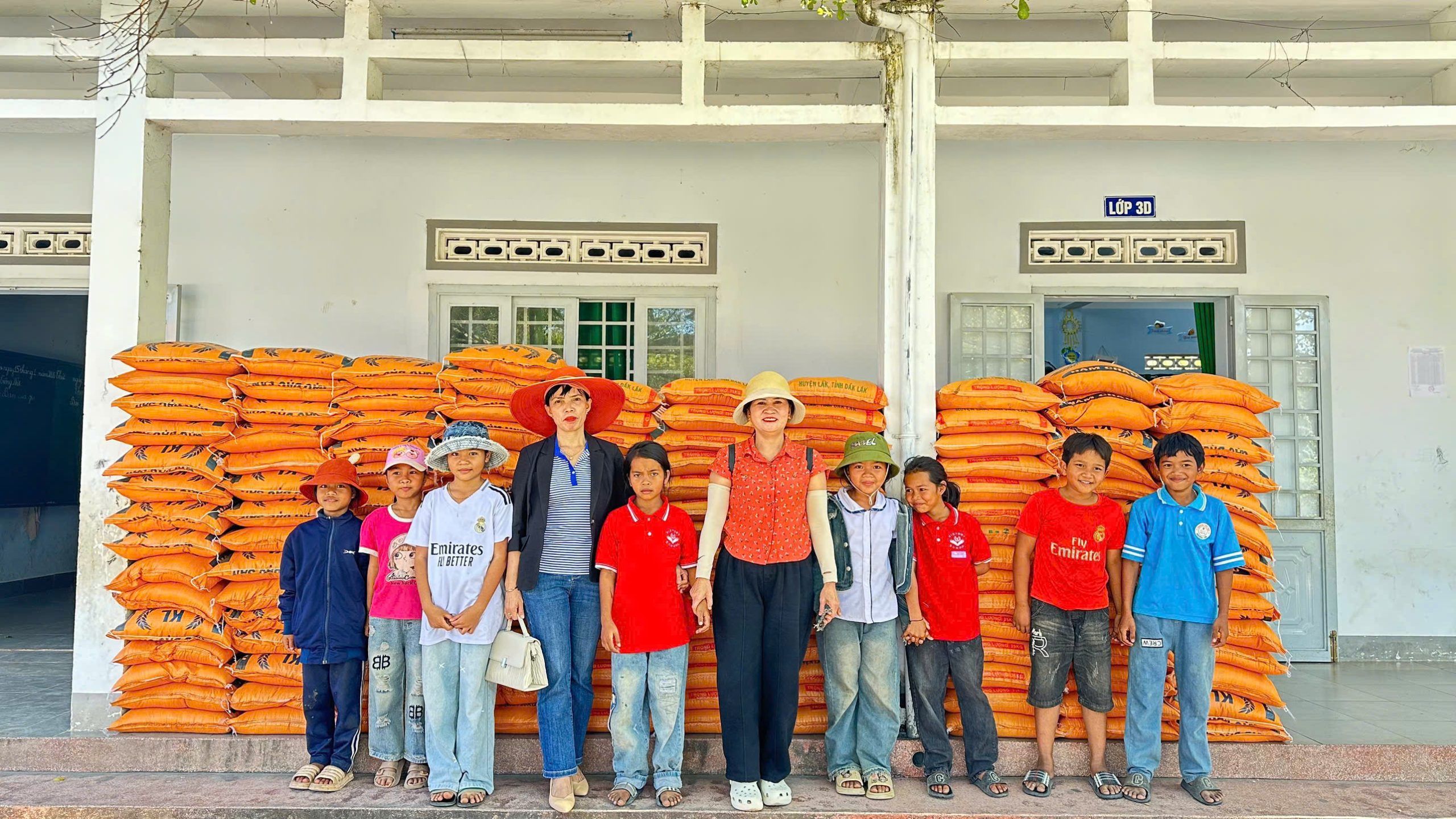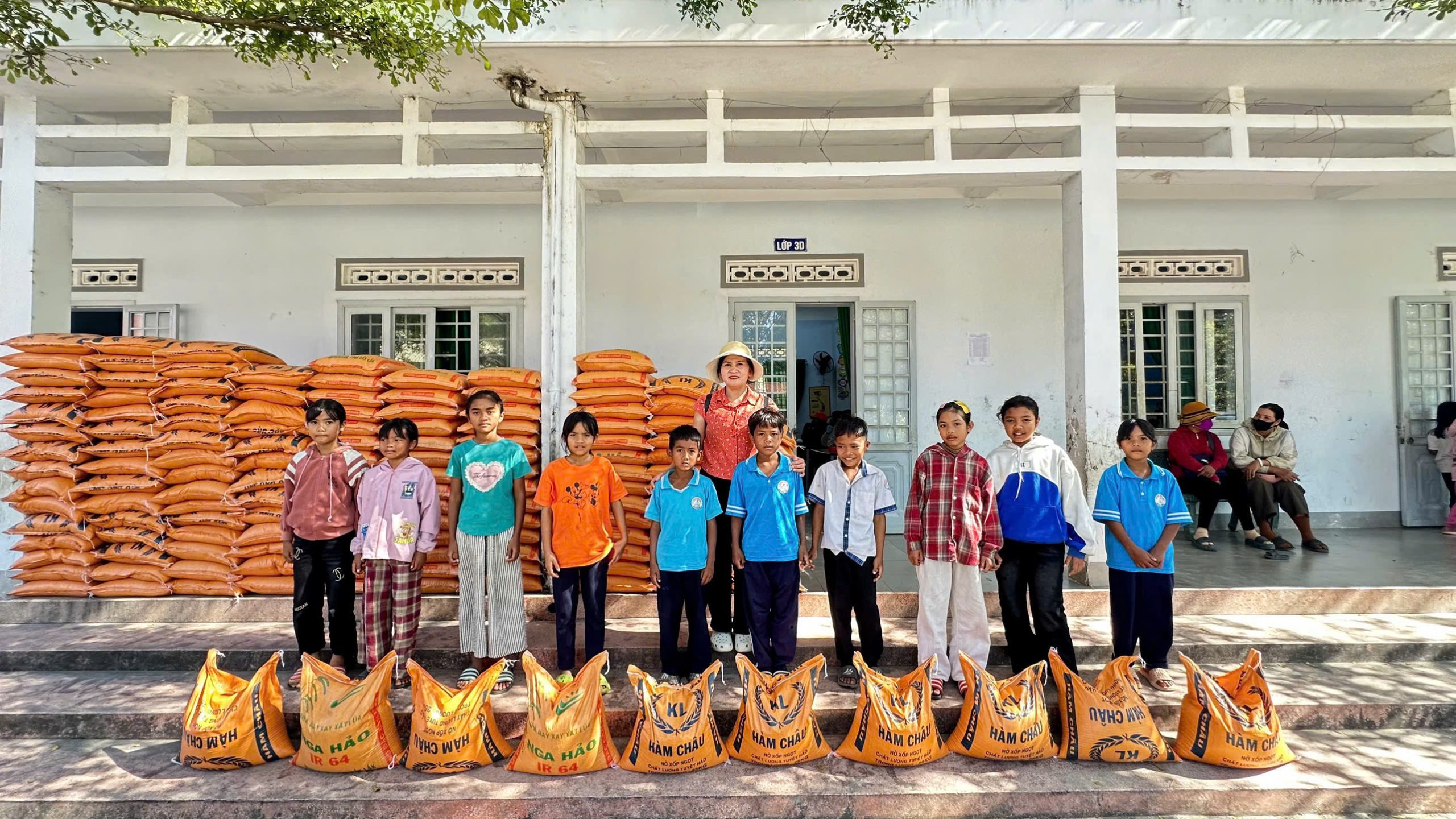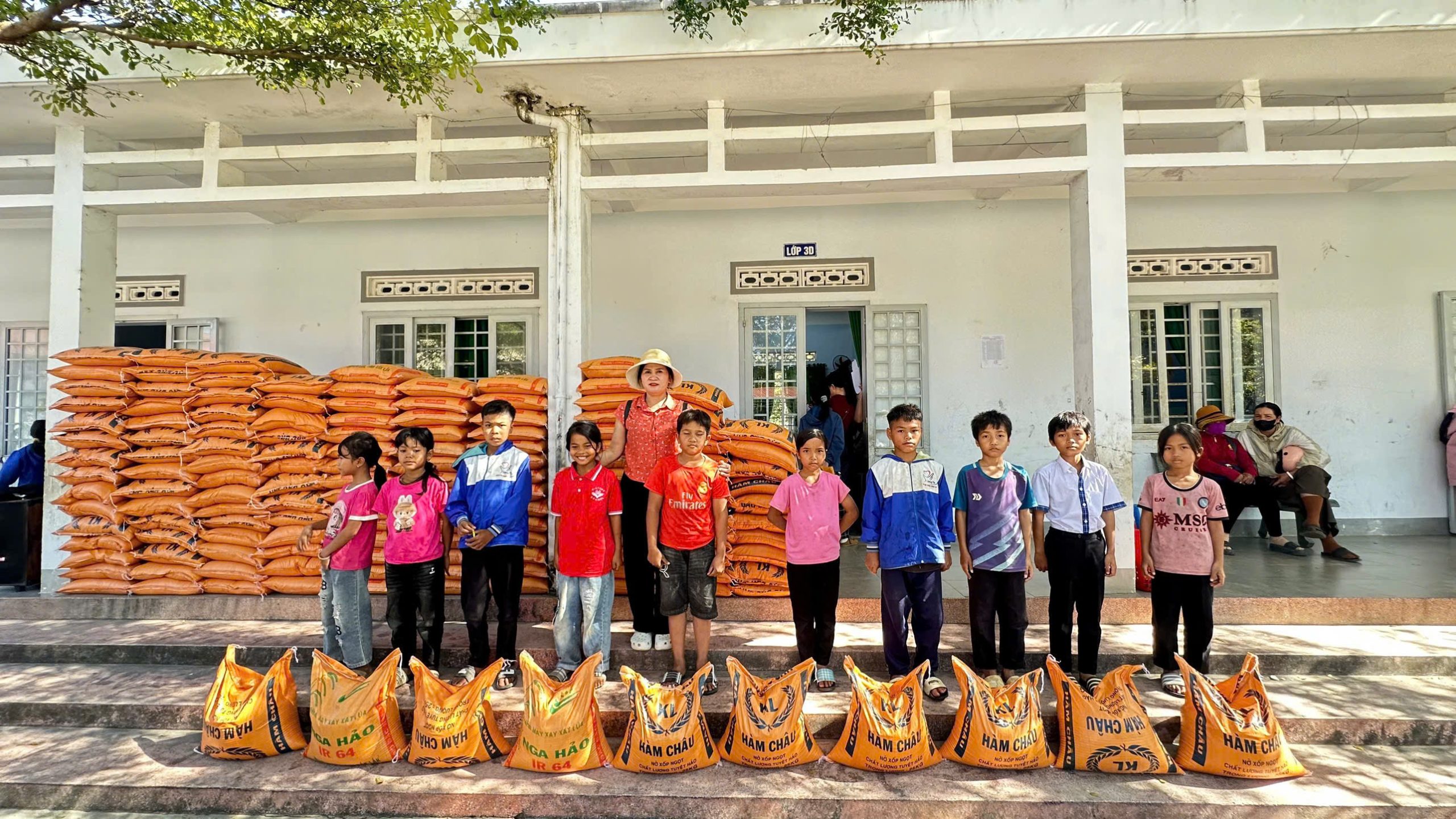Những phần gạo tuy giản dị nhưng chứa đựng sự quan tâm, sẻ chia, góp phần động viên các em vượt qua khó khăn, yên tâm học tập và vững bước đến trường.