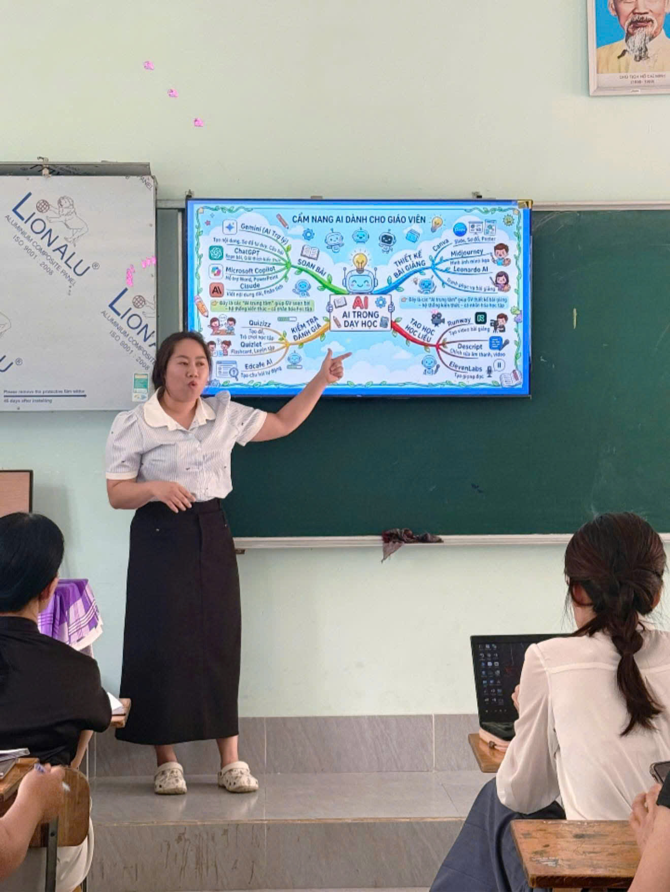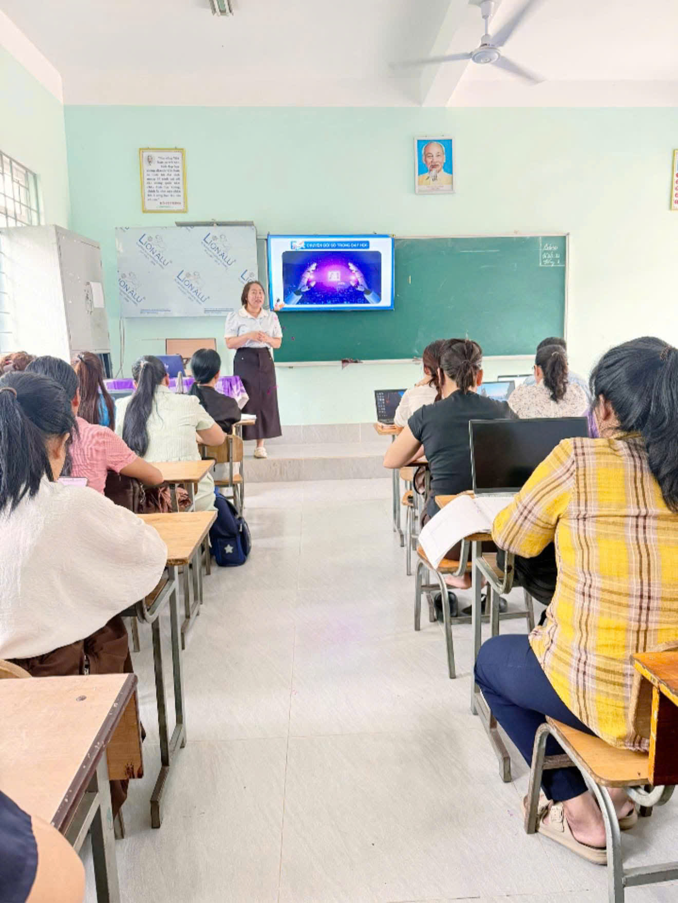 Chương trình do cô Nguyễn Thị Thuỳ Trang và cô Cao Lưu Phương trực tiếp chia sẻ, mang đến nhiều nội dung thiết thực, giúp giáo viên tiếp cận và áp dụng công nghệ số một cách linh hoạt, góp phần đổi mới phương pháp giảng dạy trong nhà trường.
